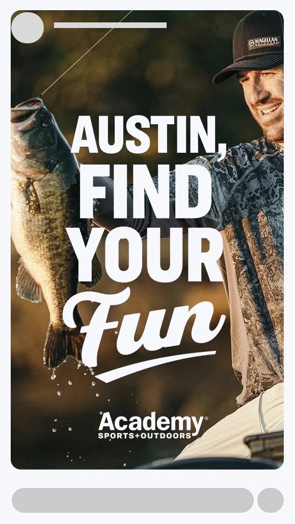 I worked alongside a senior designer and the Academy design director to create a design system for new stores at Academy. This system is utilized when any store opens in a new area. It is comprised of OOH billboards, mailers, in-store signage, email modules, social media graphics, and more.